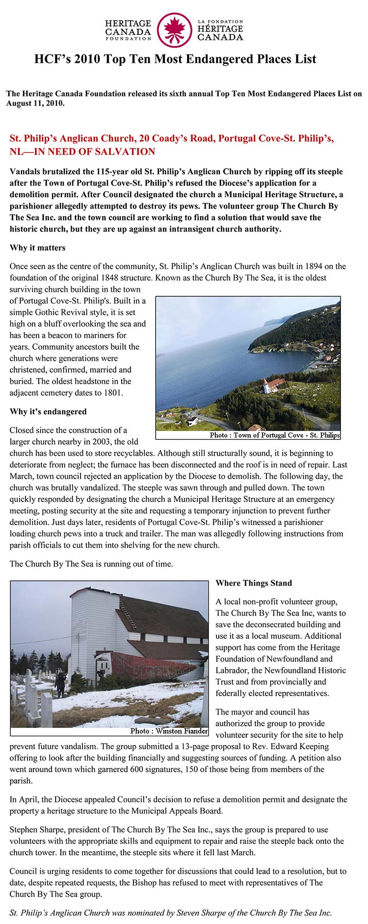 1894 St. Philip's Church makes the list: Heritage Canada Foundation's Top Ten Endangered Places in Canada