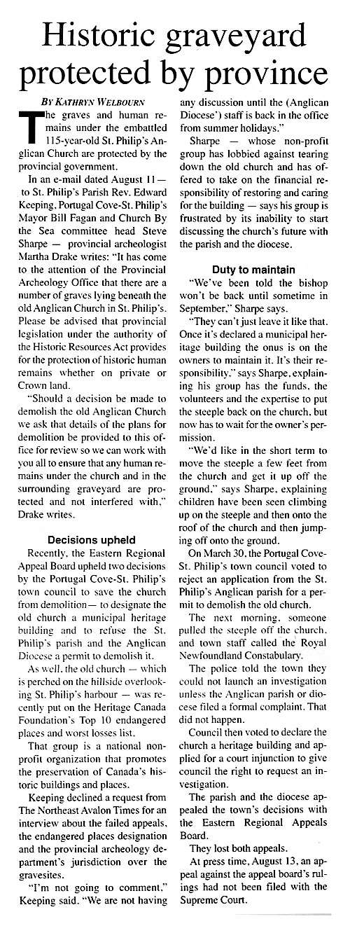 The following was published in the Northeast Avalon Times newspaper in August 2010: