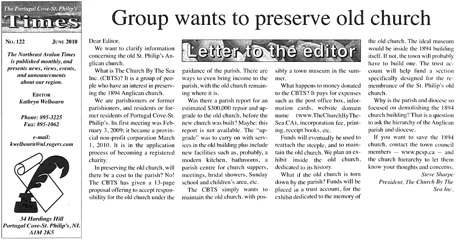 The following was published in The Northeast Avalon Times newspaper in June 2010: