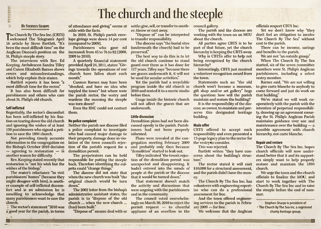 The following Letter to the Editor was published in the May 7th issue of The Telegram: